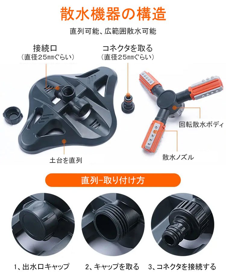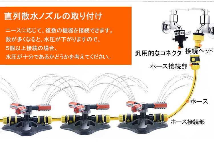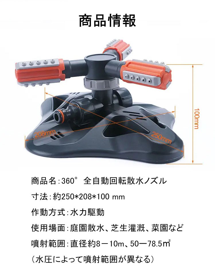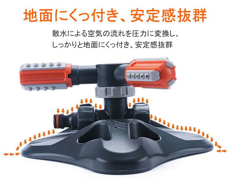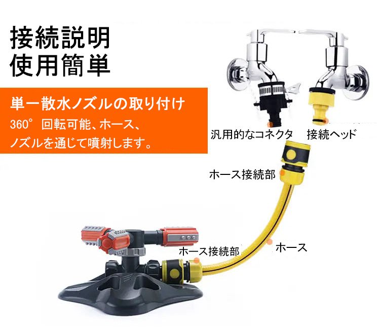 【360度自動回転散水ノズル】広範囲、自動回転、使用便利